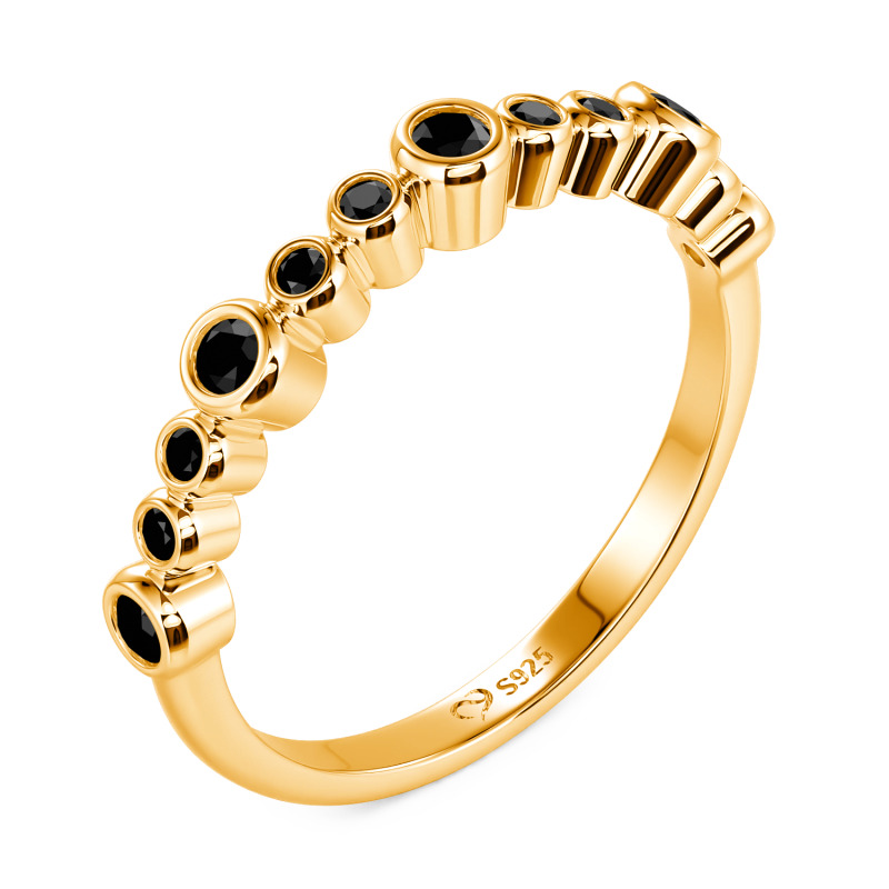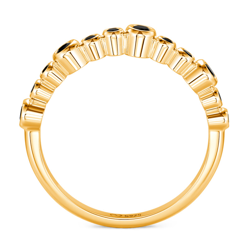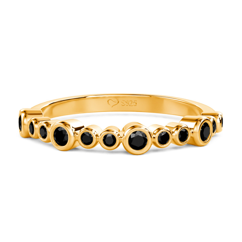 Este anillo apilable Jeulia Everyday presenta piedras redondas dispuestas de forma escalonada y artística, creando una joya versátil para superponer sin esfuerzo. Su banda ultrafina garantiza comodidad incluso al llevar varios anillos, mientras que el baño de oro recibe un tratamiento especial antideslustre para mantener un brillo duradero. Combina este delicado anillo con una camisa blanca impecable por la mañana para captar la luz con un resplandor translúcido. Apila tres anillos para una tarde de arte deslumbrante en los dedos. Lleva uno solo por la noche, descansando este anillo diario en tu nudillo para revelar sus exquisitos detalles.