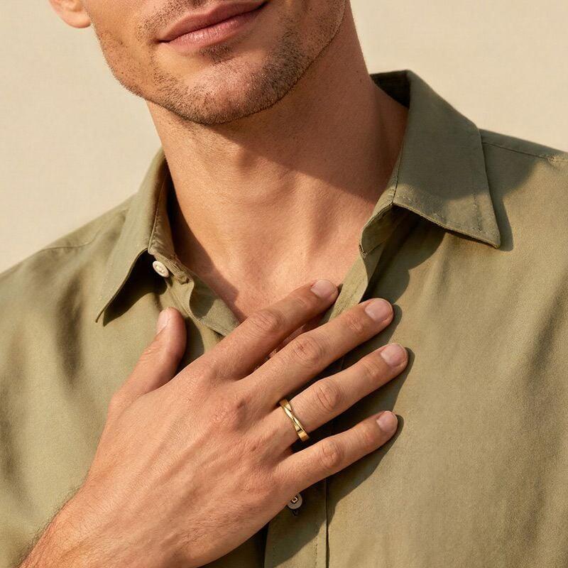 Jeulia Alianza de Bodas para Hombre Dorado Retorcido Simple