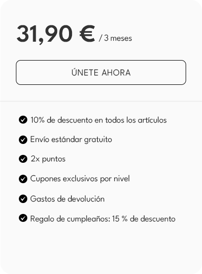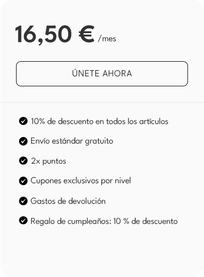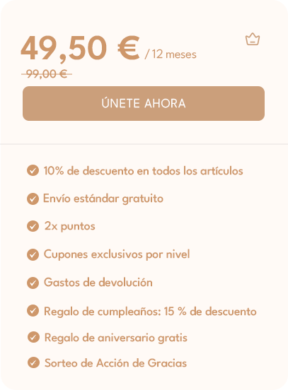 Significa que obtendrá 2 veces puntos por lo que pagó por tu pedido. Por ejemplo, si pagó 110 € por tu pedido, obtendrá 200 puntos, lo que equivale a 2,2 € en tu próxima compra.