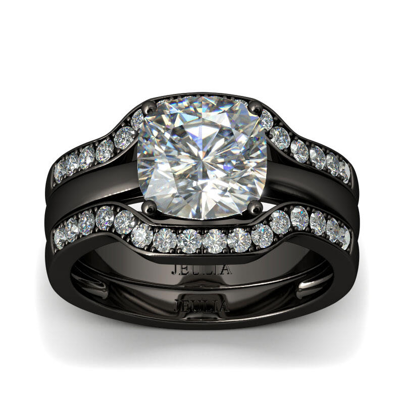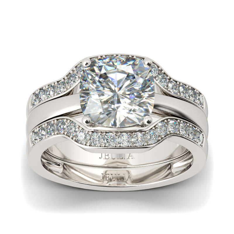Jeulia Terno De Anillos Con Dos Tonos De Talla Cojín En Plata De Ley