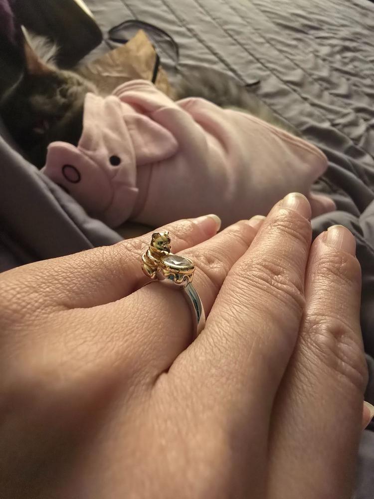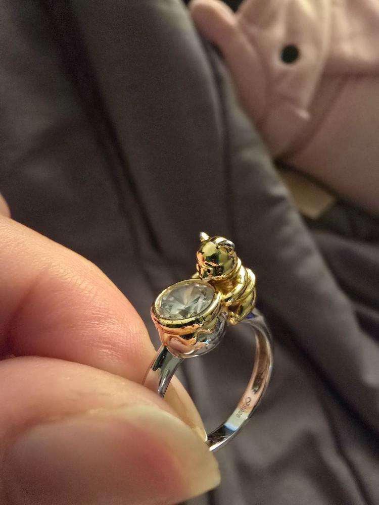 Jeulia Anillo de plata de ley de talla redonda con oso y jarra de miel