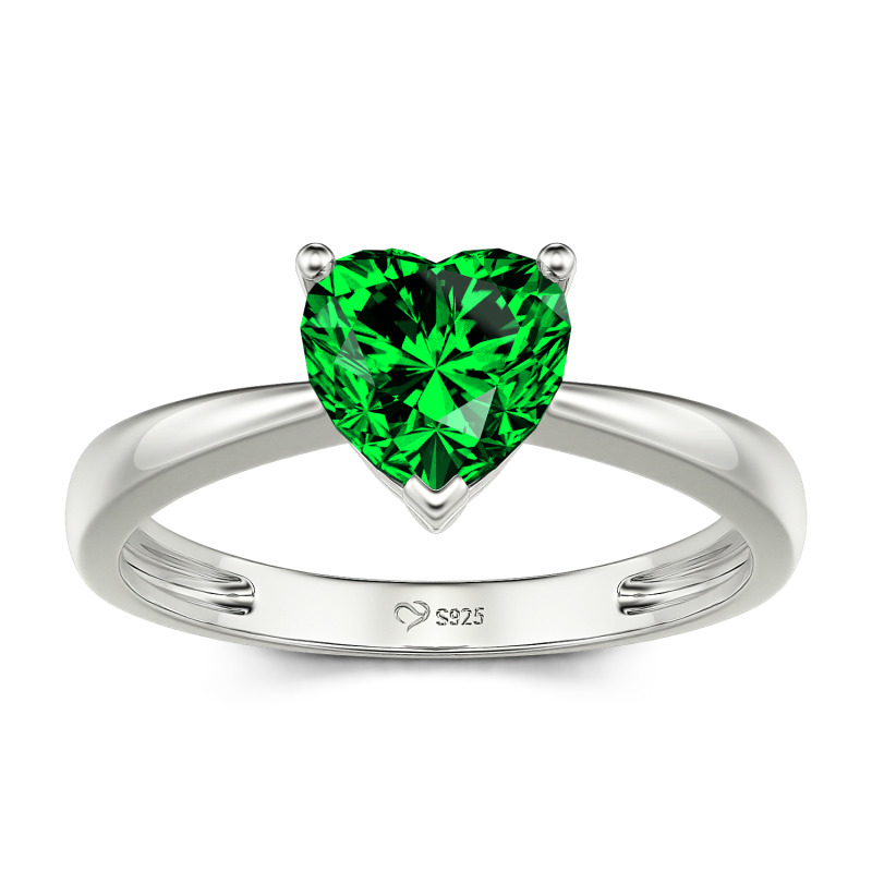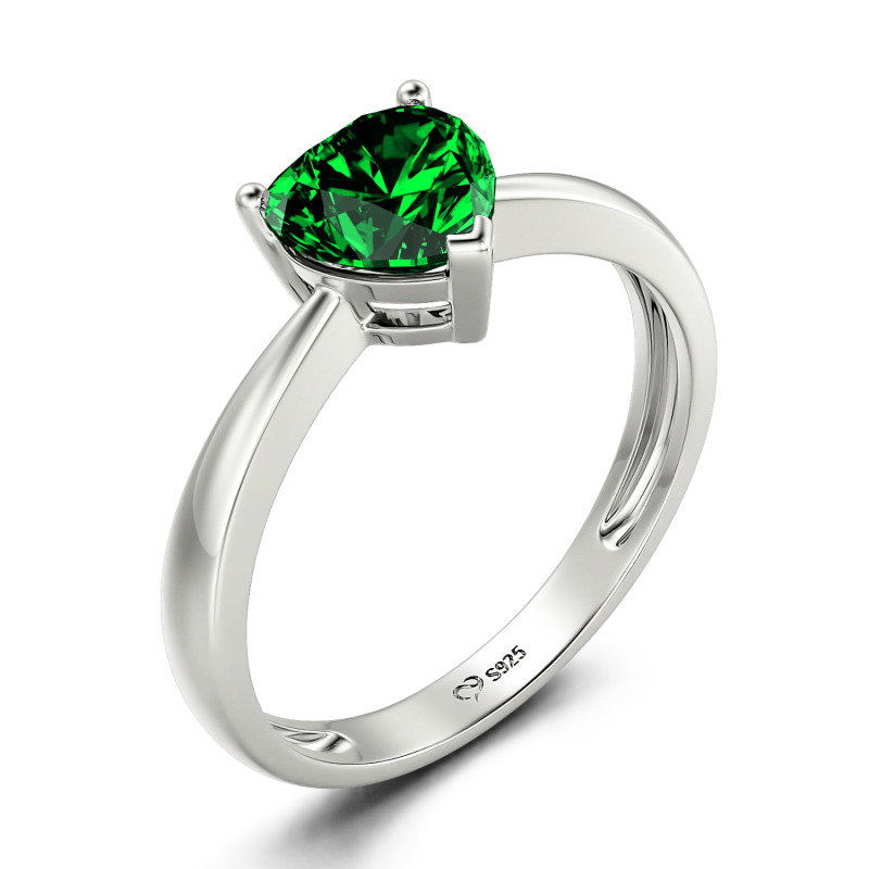 Jeulia Anillo de Compromiso con Corte de Corazón Clásico Montado Sobre Tres Garra de Plata de Ley
