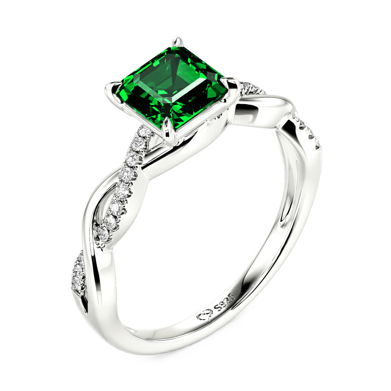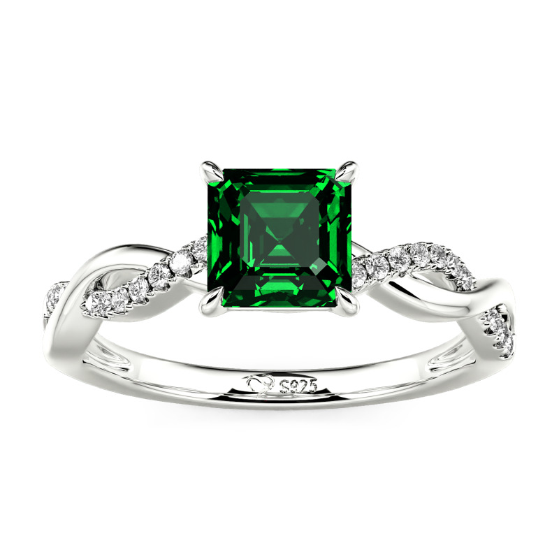 Jeulia Anillo 10K/14K/18K Platino de Compromiso Asscher Personalizado Diseño Trenzado