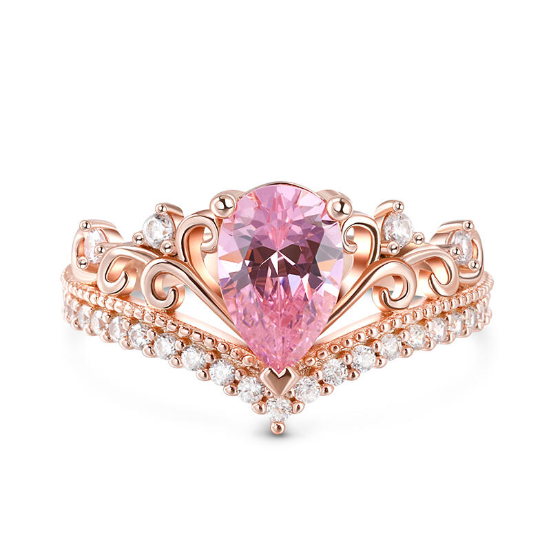 Jeulia Anillo de Plata de Ley con Corte de Pera y Diseño de Corona