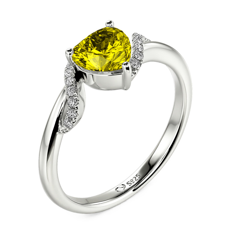 Este anillo de compromiso Jeulia en forma de corazón personalizado ofrece una interpretación innovadora del romanticismo, reinventando el símbolo clásico con una estética asimétrica audaz. La piedra central en forma de corazón presenta un corte refinado de 78 facetas, donde los ángulos de refracción calculados con precisión crean un camino de luz en forma de corazón dentro de la gema. El aro combina de manera innovadora una estructura de interconexión de bypass con un diseño de media torsión, formando un diálogo filosófico de "integridad y continuidad". La sección retorcida está engastada con piedras en degradé, evocando la trayectoria de un afecto creciente.