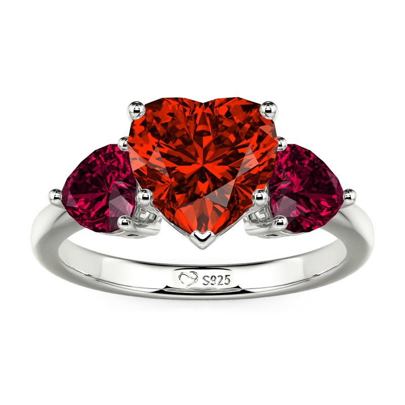 Tres piedras en forma de corazón se alinean en armonía—una gema central clara flanqueada por compañeros rojo vivo, cada una refleja la luz en ritmo sincronizado. Personaliza tu paleta: gemas rosas para la pasión, azules para la serenidad, o tonos metálicos desde plata hasta oro rosa. Un tributo a las capas del amor, el anillo Jeulia Custom Classic Heart Three Stone está diseñado para quienes creen que la emoción tiene un color y el recuerdo una forma.