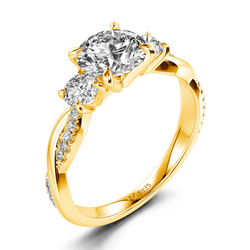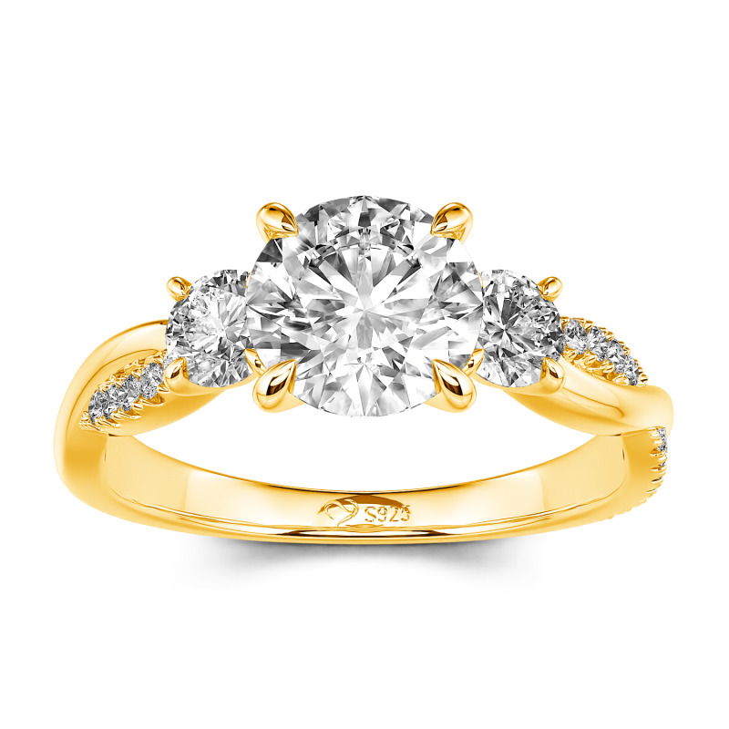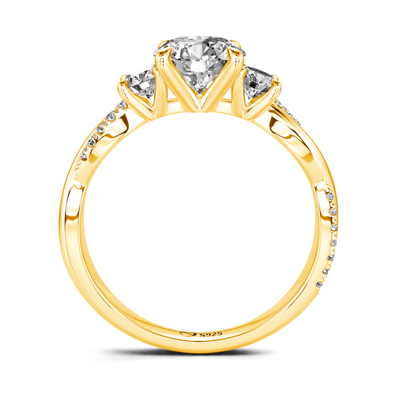 Eleva tu promesa de amor con el anillo de compromiso Jeulia twisted custom three stone. En su corazón, una brillante piedra central de corte redondo ocupa el centro de atención, flanqueada por dos piedras de acento brillantes. El tallo cruzado torcido, adornado con un delicado patrón de piedras alineadas, combina elegancia moderna y romance intemporal. Ya sea para marcar un compromiso o un hito, su trío radiante de piedras y su intrincada torsión simbolizan un amor tan único y duradero como tu historia. Una elección brillante para grabar tu eternidad con estilo.