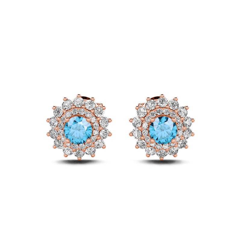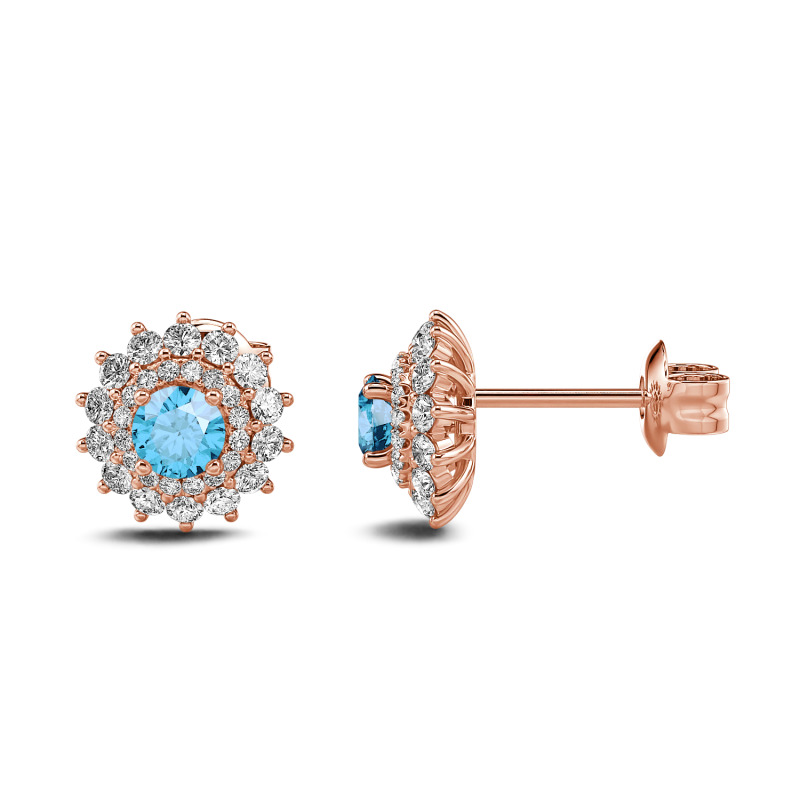 Jeulia Pendientes doble halo forma de flor corte redondo para mujer de plata de ley