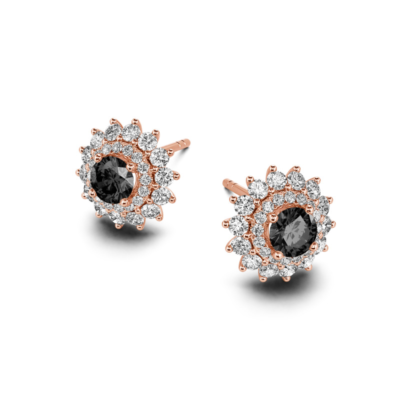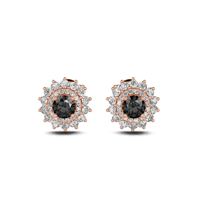 Jeulia Pendientes doble halo forma de flor corte redondo para mujer de plata de ley