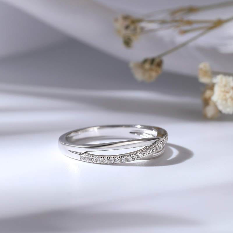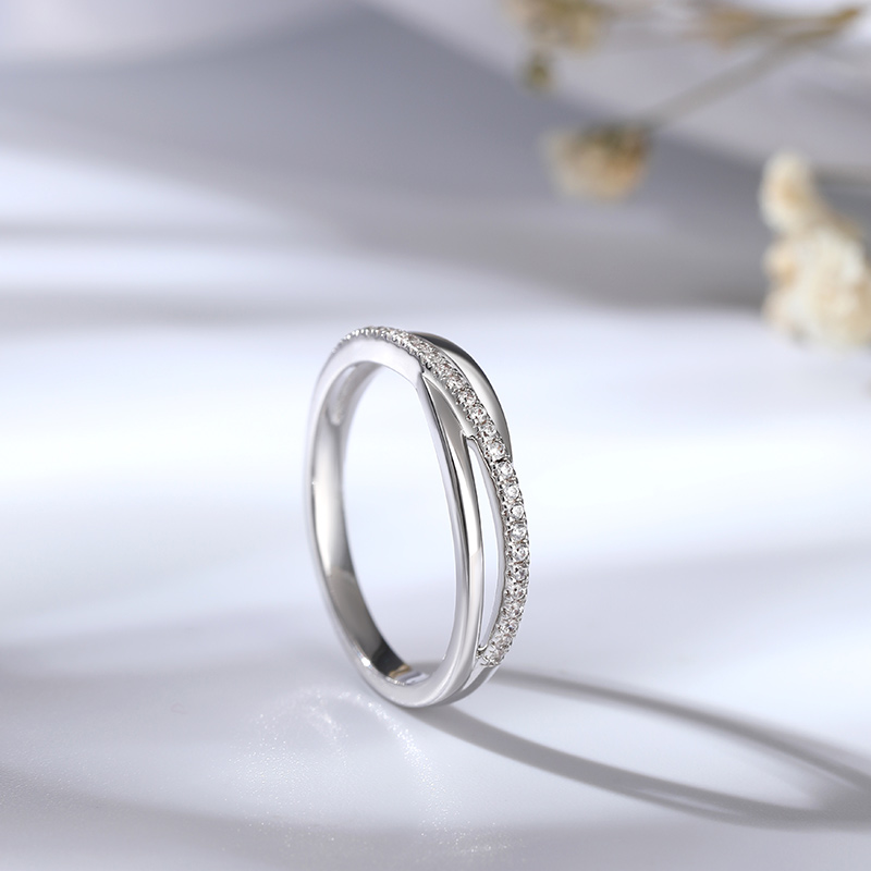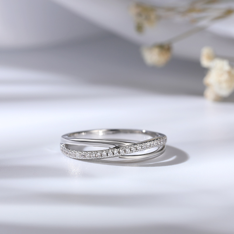 Jeulia Anillo para mujer con diseño clásico cruzado de plata de ley