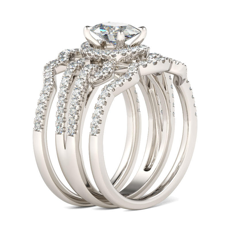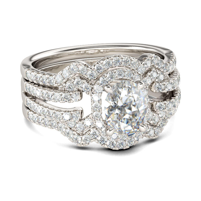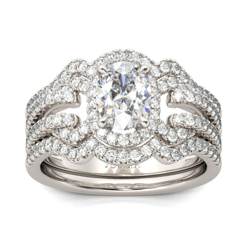 Jeulia Conjunto De Anillos Con Halo De Talla Ovalada En Plata De Ley