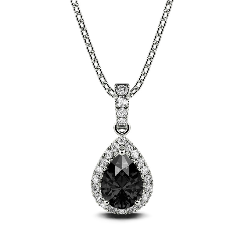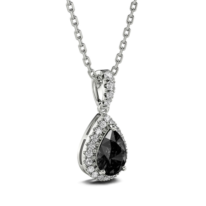 Jeulia Collar de corte pera halo para mujer de plata de ley