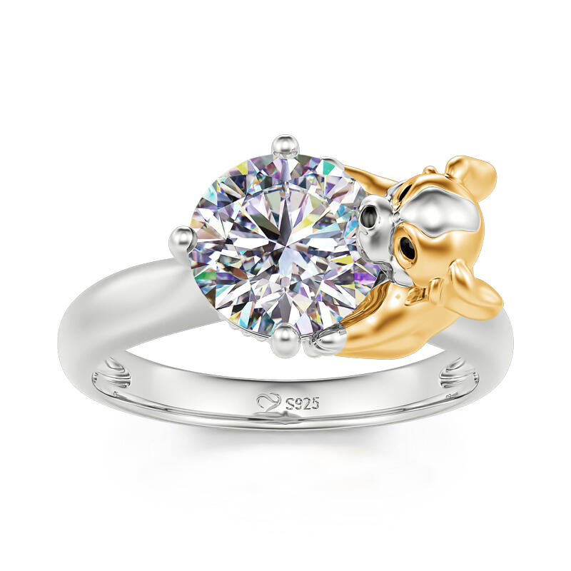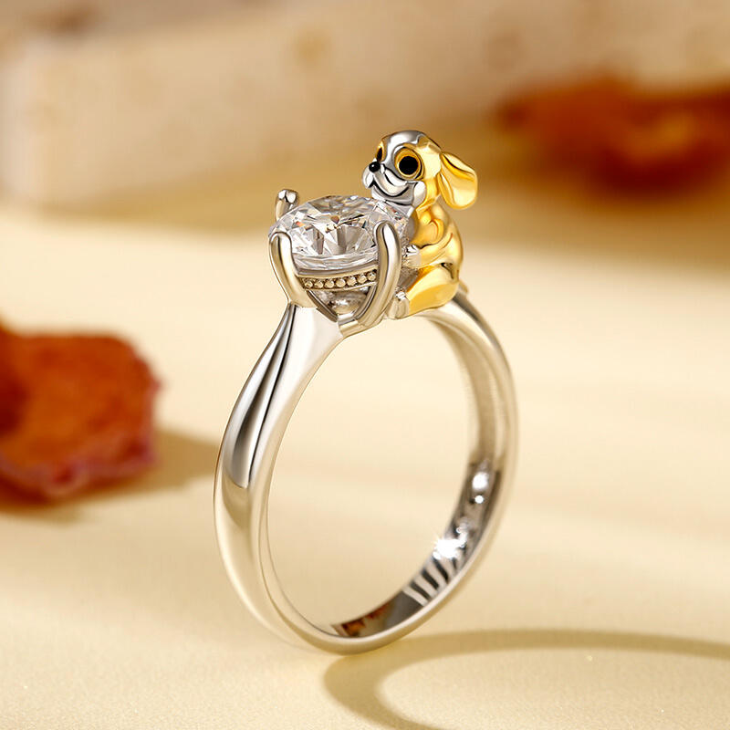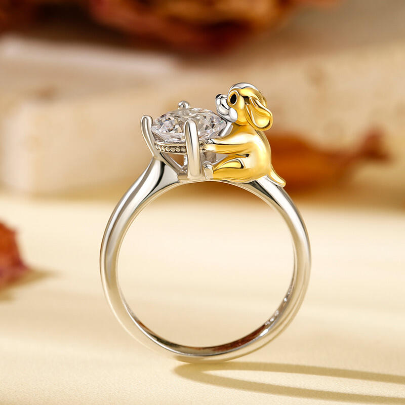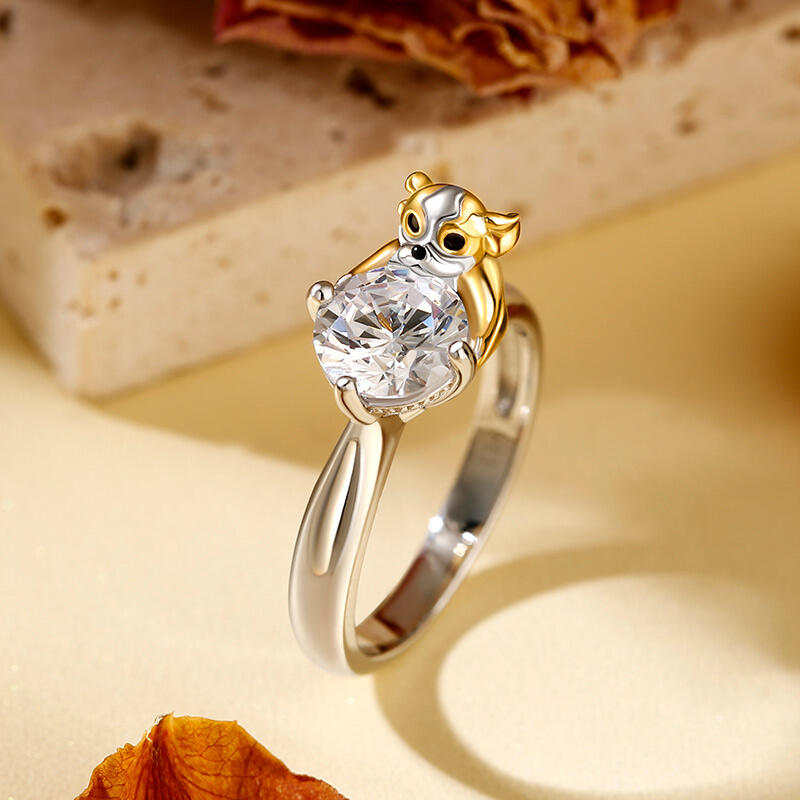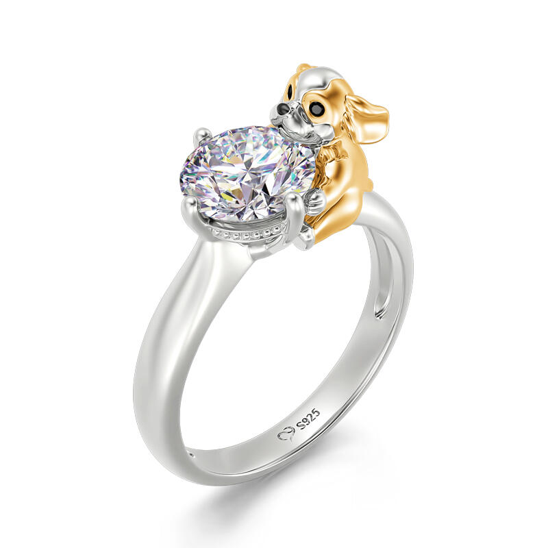 Jeulia Hug Me Anillo con un perrito Cavalier de plata de ley de corte redondo