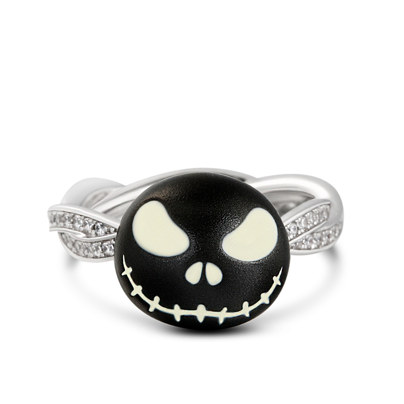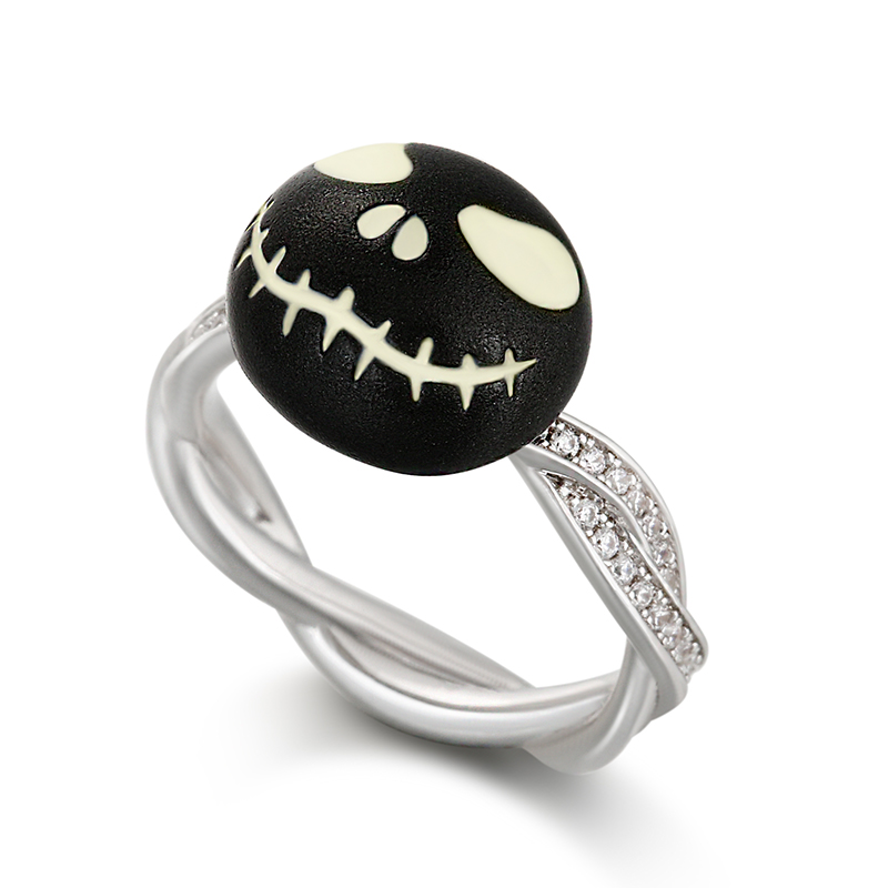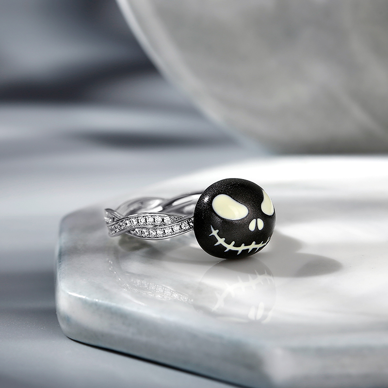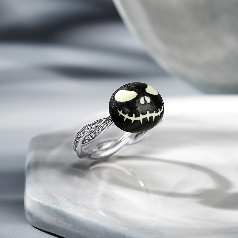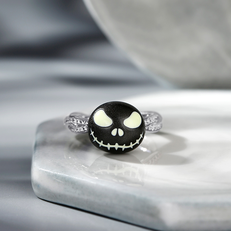 Jeulia Anillo luminoso giratorio con diseño de calavera negra de plata de ley