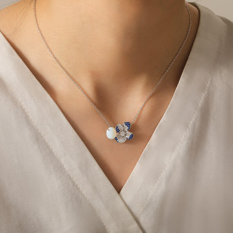 Inspirado en la obra clásica de teatro de Shakespeare, este collar de flor de piedra lunar y zafiro Jeulia Midsummer Night pansy se basa en las pensamientos del bosque encantado. La flor está colocada al lado de una piedra lunar de tono azul, cuyo efecto característico de la turmalina, como el polvo mágico de la Reina de las Hadas, se transforma con la luz en un brillo azul y blanco entrelazado. Los pétalos de la flor están dispuestos en una gradación de piedras redondas de color azul y blanco, reproduciendo los tonos misteriosos de la luz de la luna en el bosque. La forma general del collar de flor de piedra lunar es simple y refinada, conservando suficiente atractivo visual para garantizar la practicidad para el uso diario. La piedra lunar y el zafiro se complementan en color, creando un efecto de polvo de hada oculto, sin necesidad de exagerar la forma para despedir un encanto fantástico.
