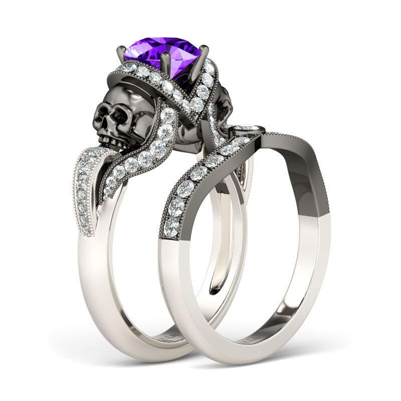 Jeulia Conjunto De Anillos Milgrain De Caravera De Talla Redonda En Plata De Ley
