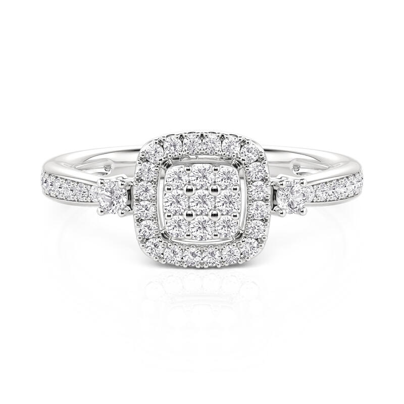 Jeulia Anillo de Compromiso Minimalista Tres Piedras Halo Cuadrado