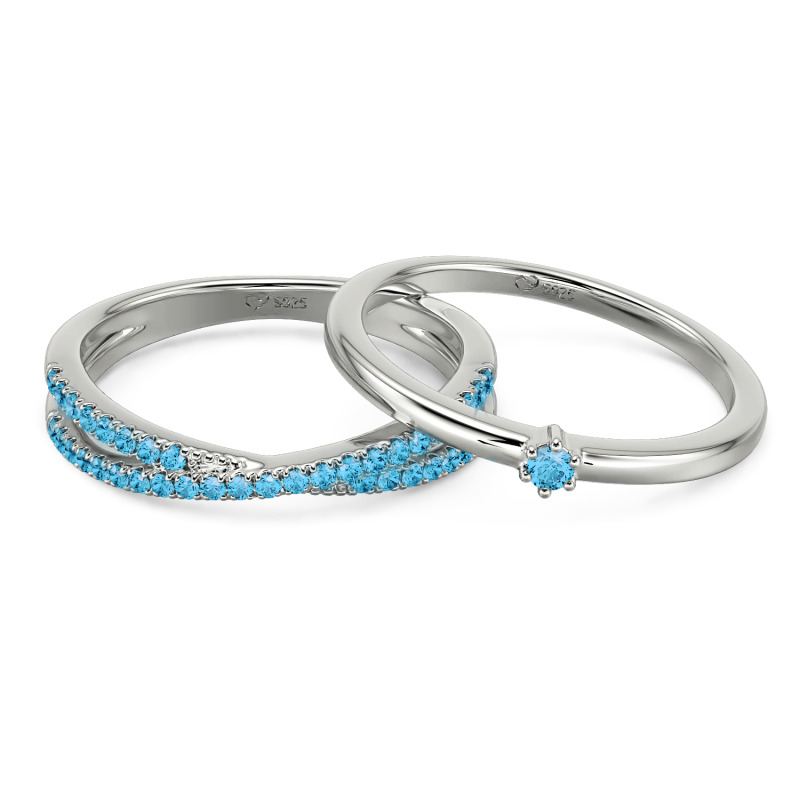 El set de anillos Jeulia Minimalist Custom Stackable Ring Set incluye una gema brillando sola en una banda; emparejada con un anillo trenzado que se asemeja a hebras de ADN desenrolladas, su hélice elegantemente trazada con zircones pavé. Elige metales a juego (luz de luna plateada) o contrastados (amanecer rosa + anochecer dorado). Las bandas se afilan en bordes pluma ligera, apilándose tan perfectamente que se fusionan en una sola sombra. El minimalismo no es ausencia—es el arte de susurrar volúmenes con dos líneas y un destello.