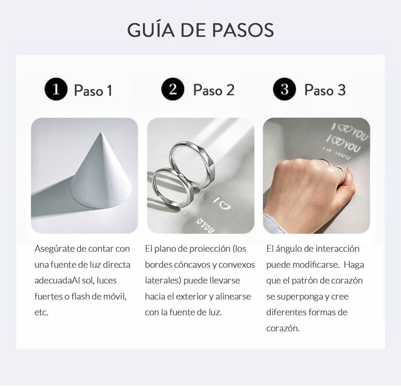 Estos anillos de proyección de amor son anillos de pareja, el brazo general del anillo es muy sencillo, la superficie también tiene un diseño geométrico irregular. Lo más característico es que este anillo de pareja puede iluminarse con luz y proyectarse en cualquier lugar con la palabra "Te quiero". Como regalo para su aniversario o fiesta especial, sin duda le dará al otro una gran sorpresa.