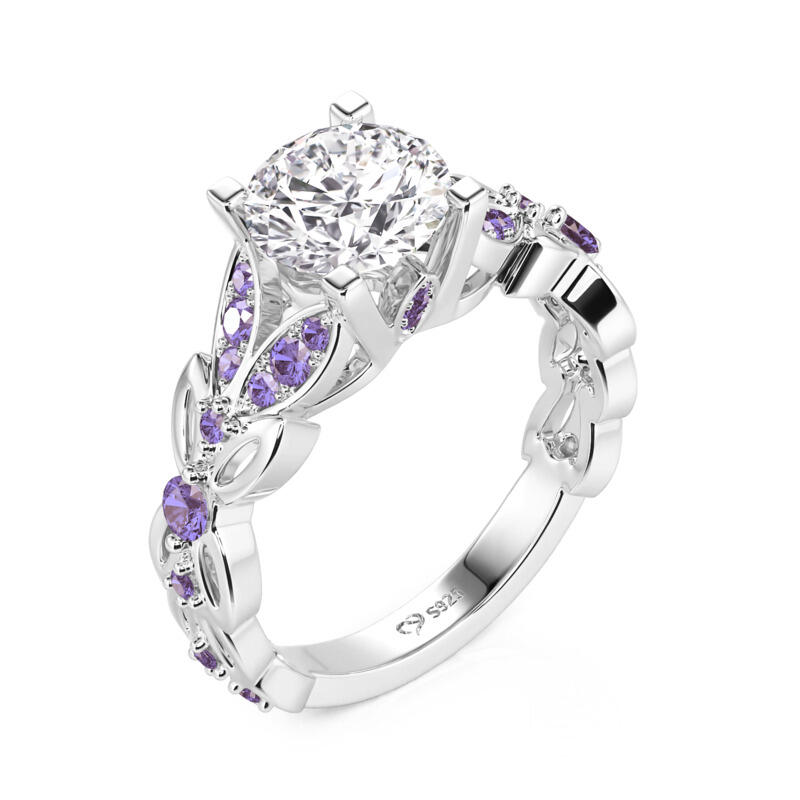 Jeulia Anillo Con Estilo Vintage Mariposa De Talla Redonda En Plata De Ley