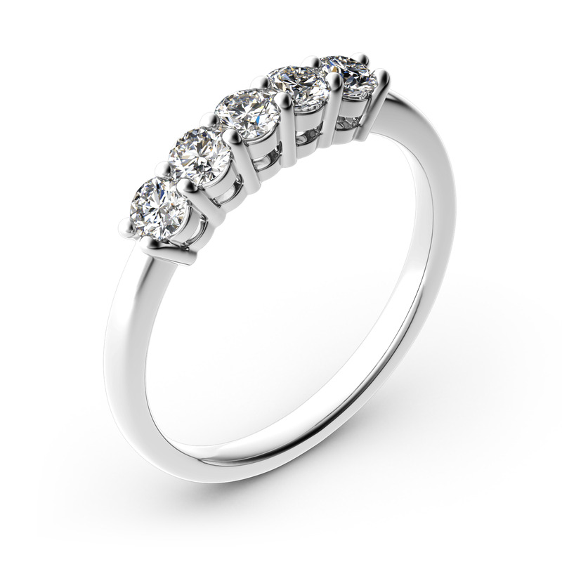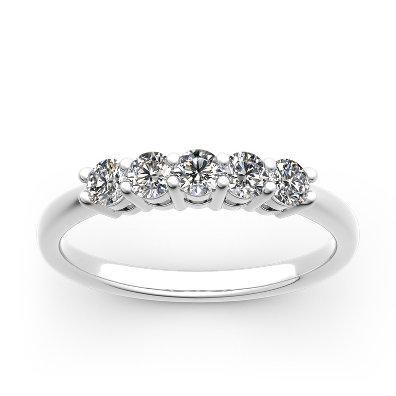 Jeulia Cinco Piedras Redondas Anillo De 10K/14K/18K Oro Blanco