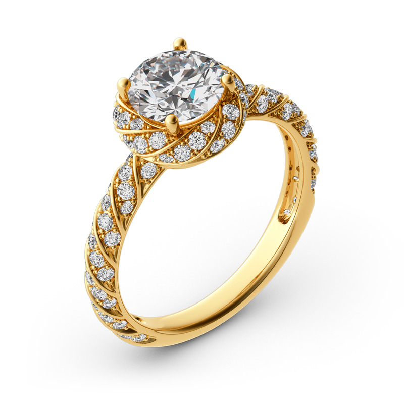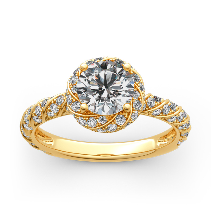Jeulia Floral Halo Anillo Redondo De 10K/14K/18K Oro Blanco De Corte Radiante