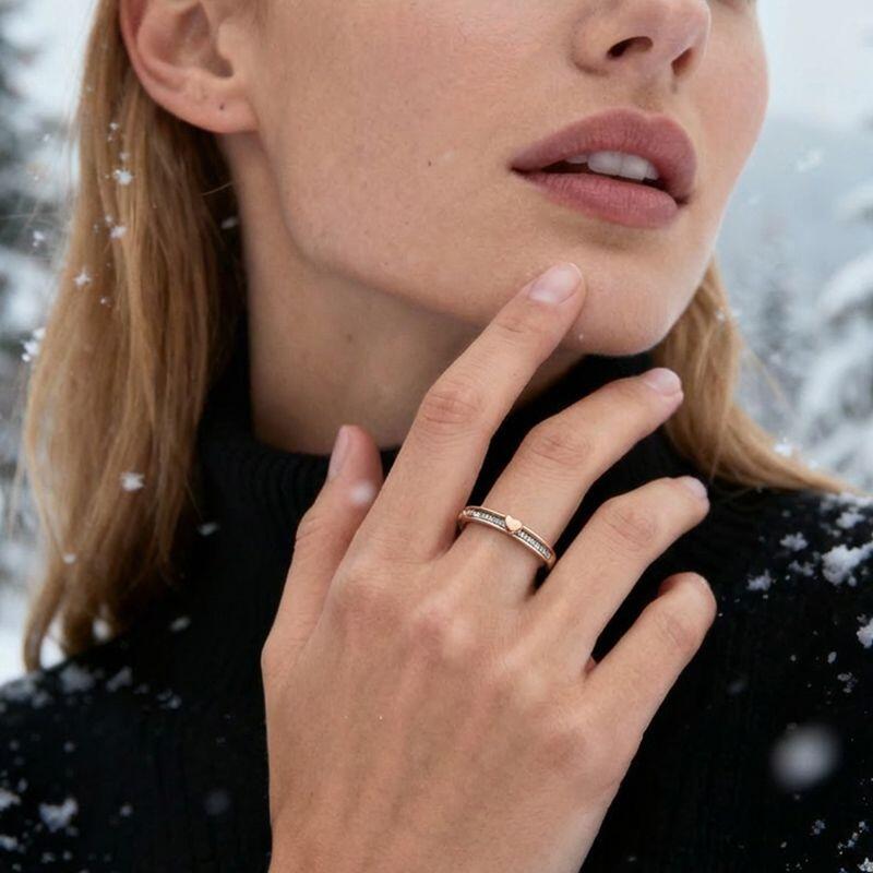 Jeulia Dos Tonos Banda Con Corazón De Mujer De Plata Esterlina