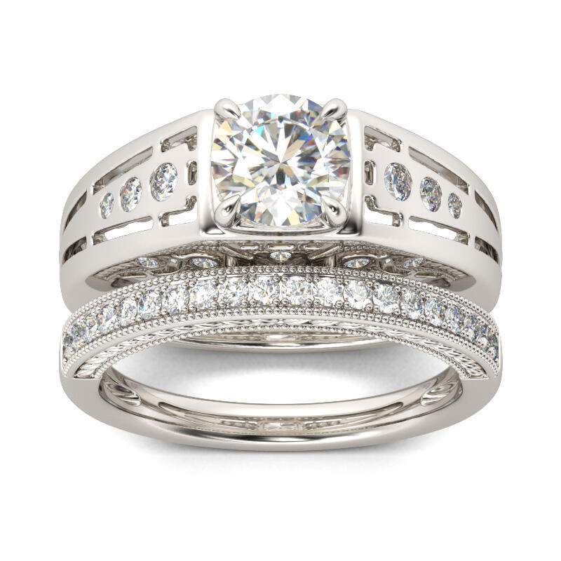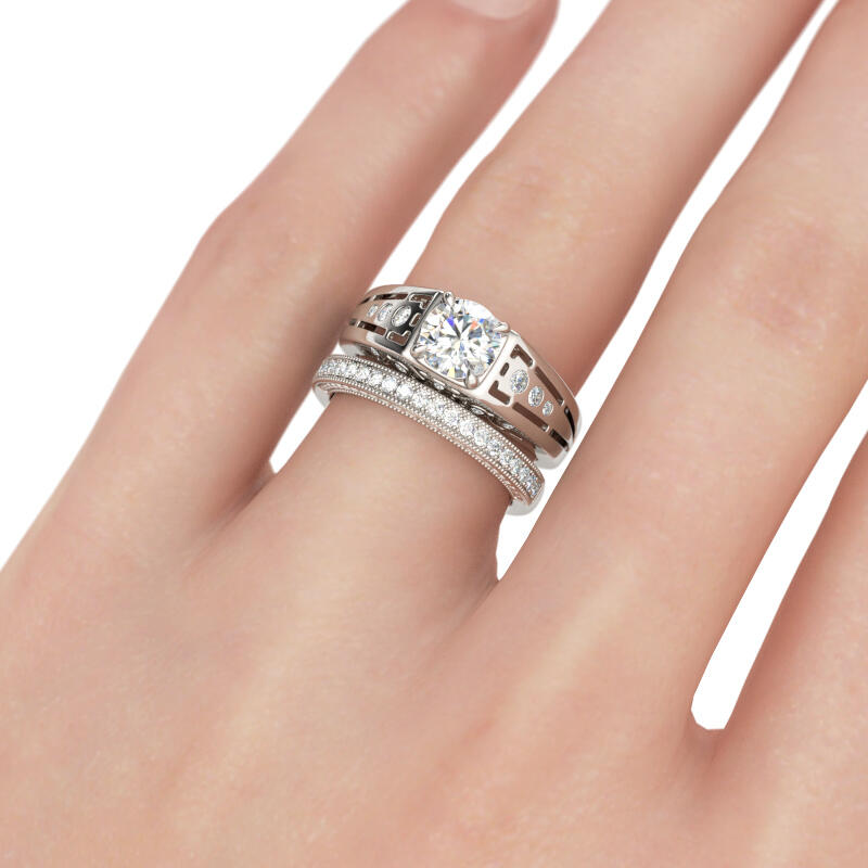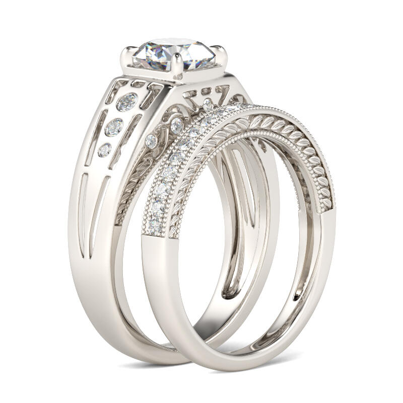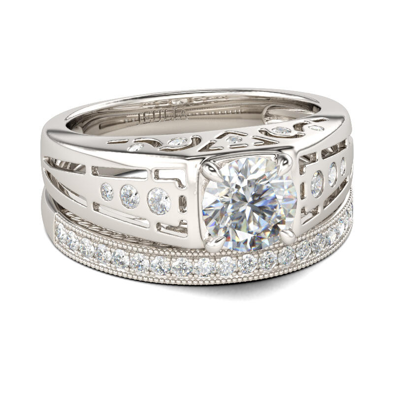 Jeulia Set De Anillo Redondo Milgrain Vintage De Plata Esterlina Con Corte Para Parejas